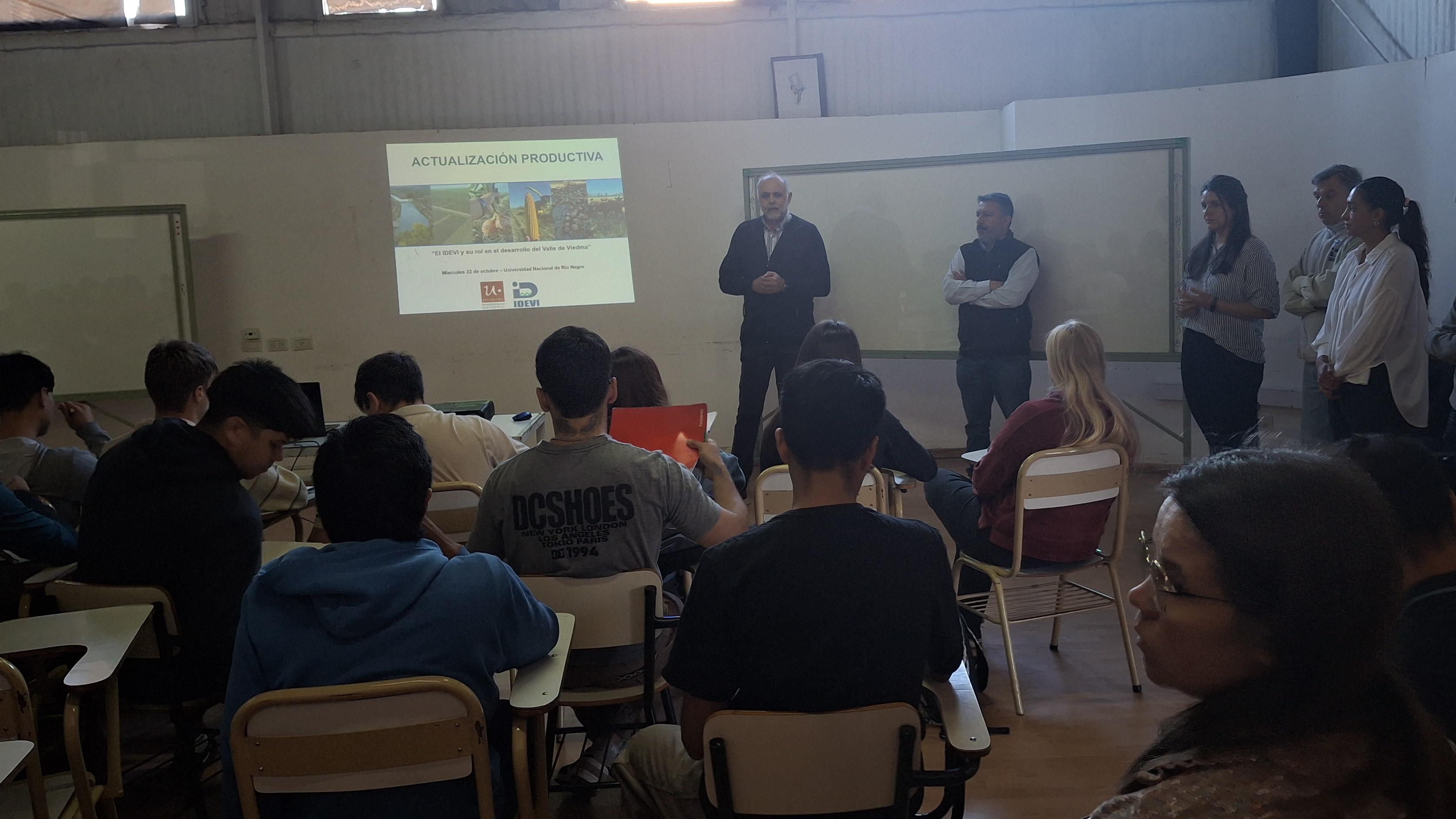 En los ultimos días se realizaron dos Jornadas Técnicas de actualización sobre el IDEVI en la Universidad del Comahue y en la Universidad Nacional de Rio Negro destinadas a estudiantes de Ingeniería Agronómica y Licenciatura en Gestión de Empresas Agropecuarias.